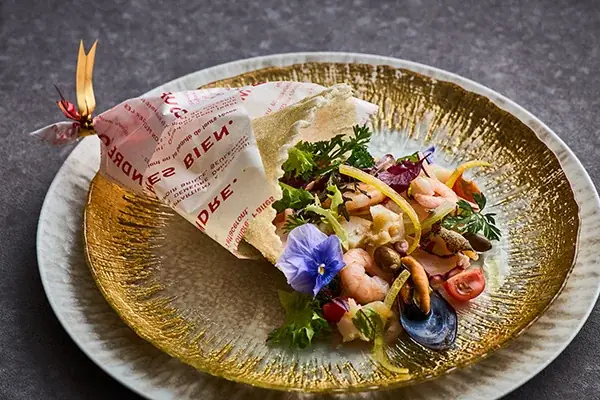 - 魚介のサラダ“フラワーブーケスタイル” — 魚介をふんだんに使い、花束を思わせる彩り豊かな盛り付け。
