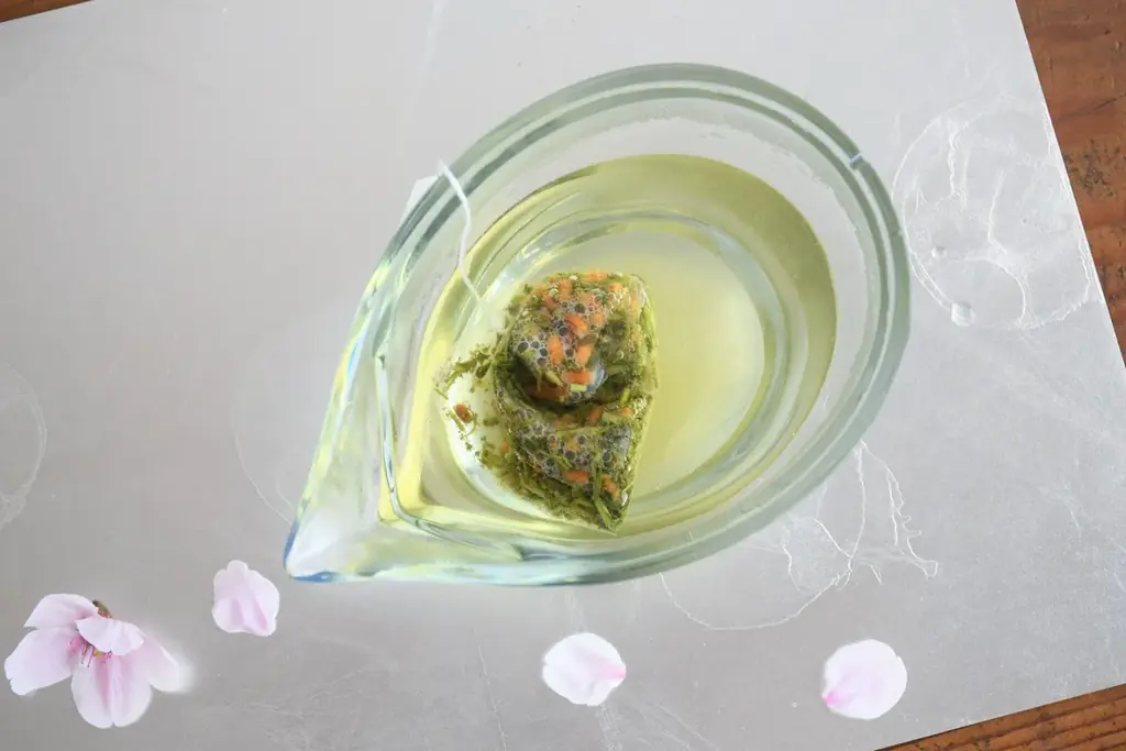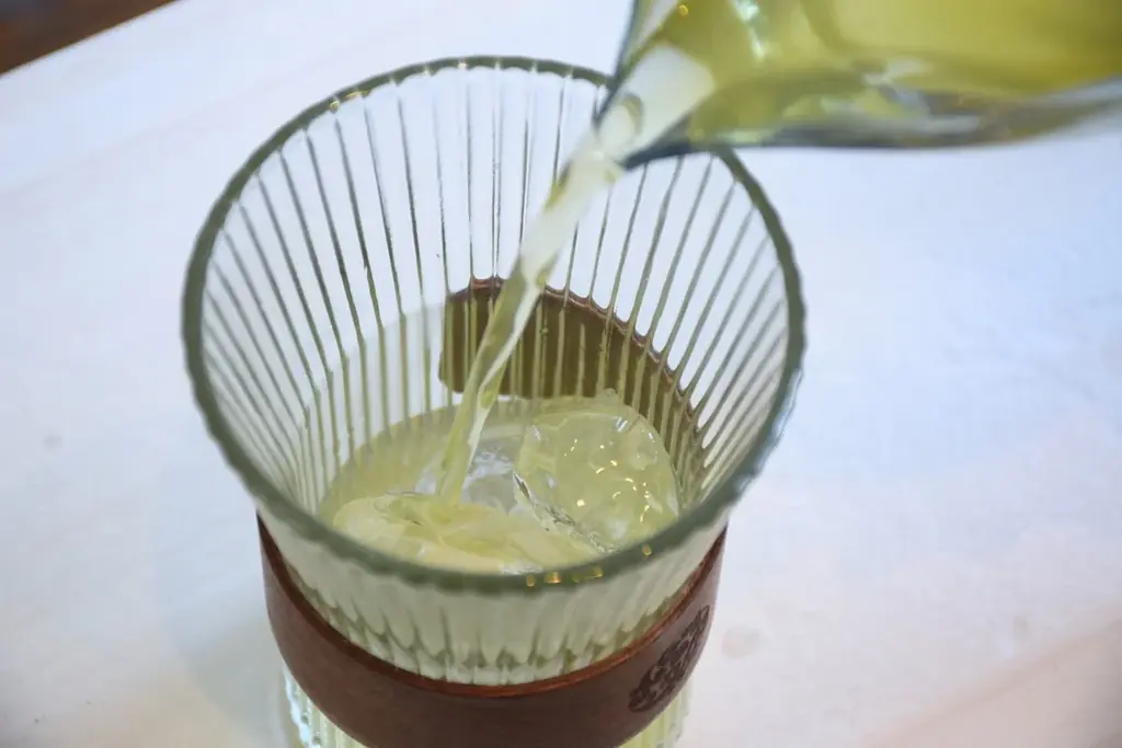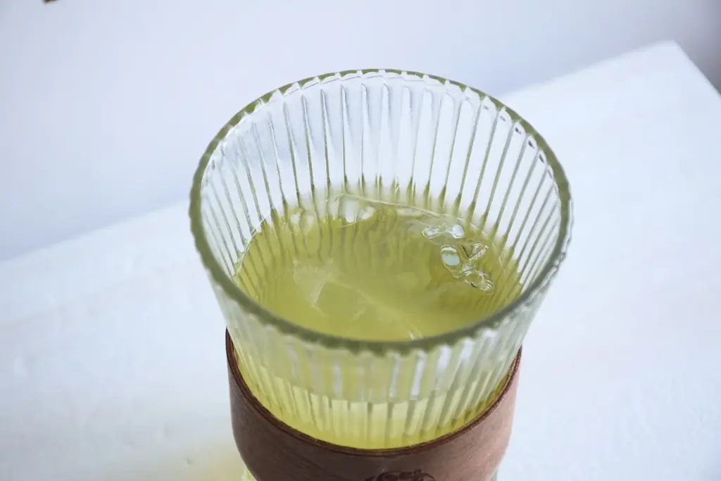- 氷の上に淹れたての熱いお茶を注ぎ、急冷することで香りと味わいを閉じ込める。