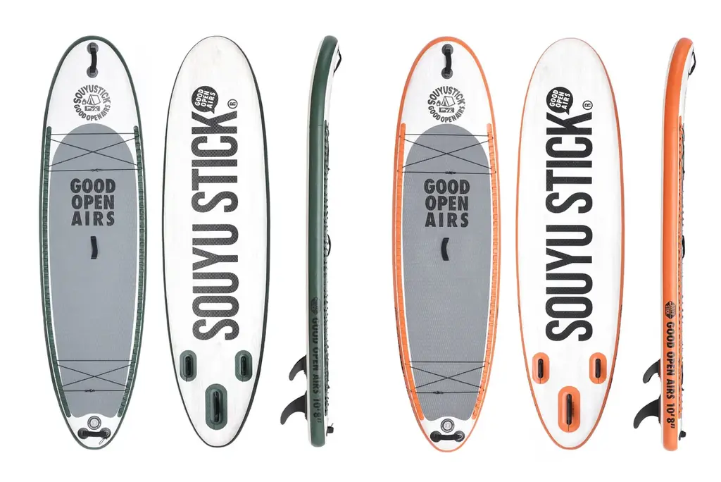 | SOUYU STICK. × myX GOOD OPEN AIRS 10’8" | サイズ:3250×870×150mm、推奨体重110kg、オリーブ/ヴィンテージオレンジ、フルパッケージ(パドル等付属) | 115,000円 | 店頭:2026/4/24 | 2026/4/11-12(海の公園/サイクルエリア/SOUYU STICK.ブース) |