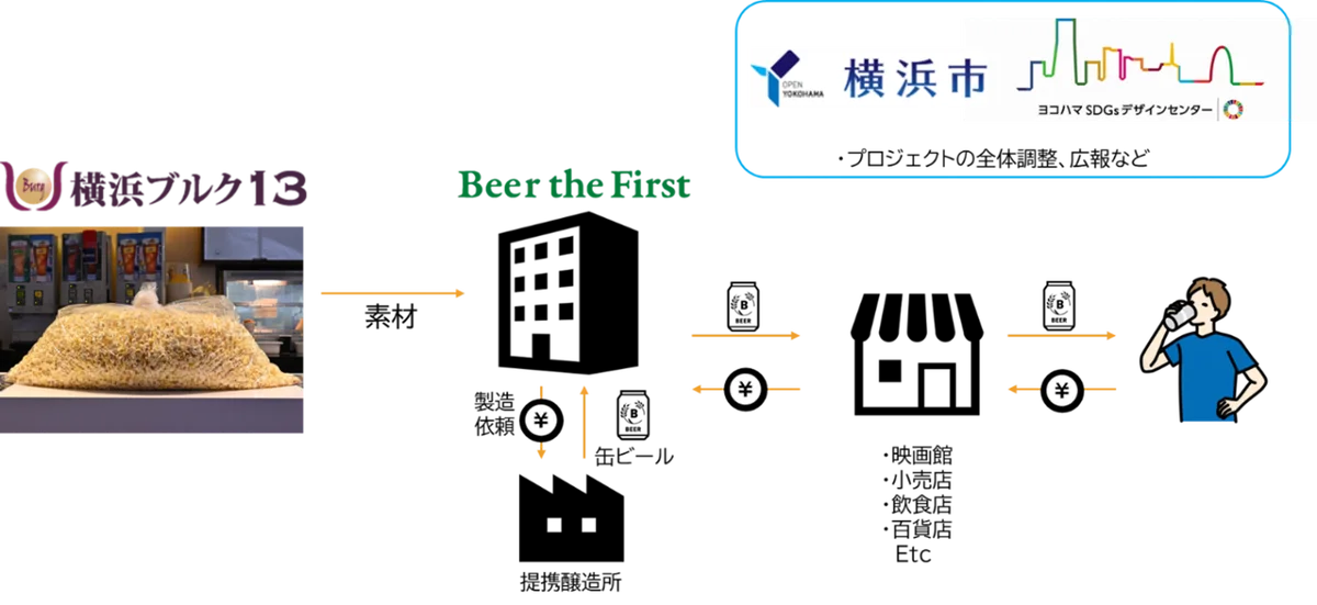 検討会の中で映画館側のヒアリングを行った結果、来場者数の変動によりポップコーンの販売量に幅が生じ、販売期限を迎えて廃棄されるポップコーンや、製造過程で生じる弾け残り・割れなどの規格外品が一定程度発生していることが確認されました。これらの“まだ食べられるのに廃棄されてしまう”食品を利活用するため、株式会社 Beer the First と連携し、横浜ブルク13から原料提供を受けることでビール製造が実現しました。