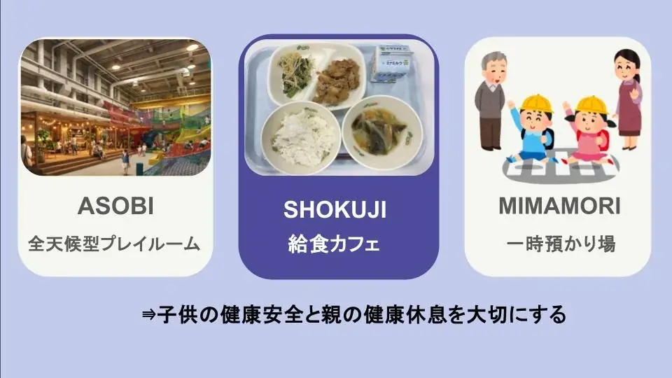 コンセプトは「『ただいま』と言える、新しい横須賀の居場所」。旧南処理場の遊休地を活用し、全天候型プレイルーム、懐かしさを感じる給食カフェ、一時預かりなどを組み合わせた複合型レジャー拠点を提案。雨天でも楽しめる施設として市外からの来訪も見込み、関係人口の創出を図る構想です。