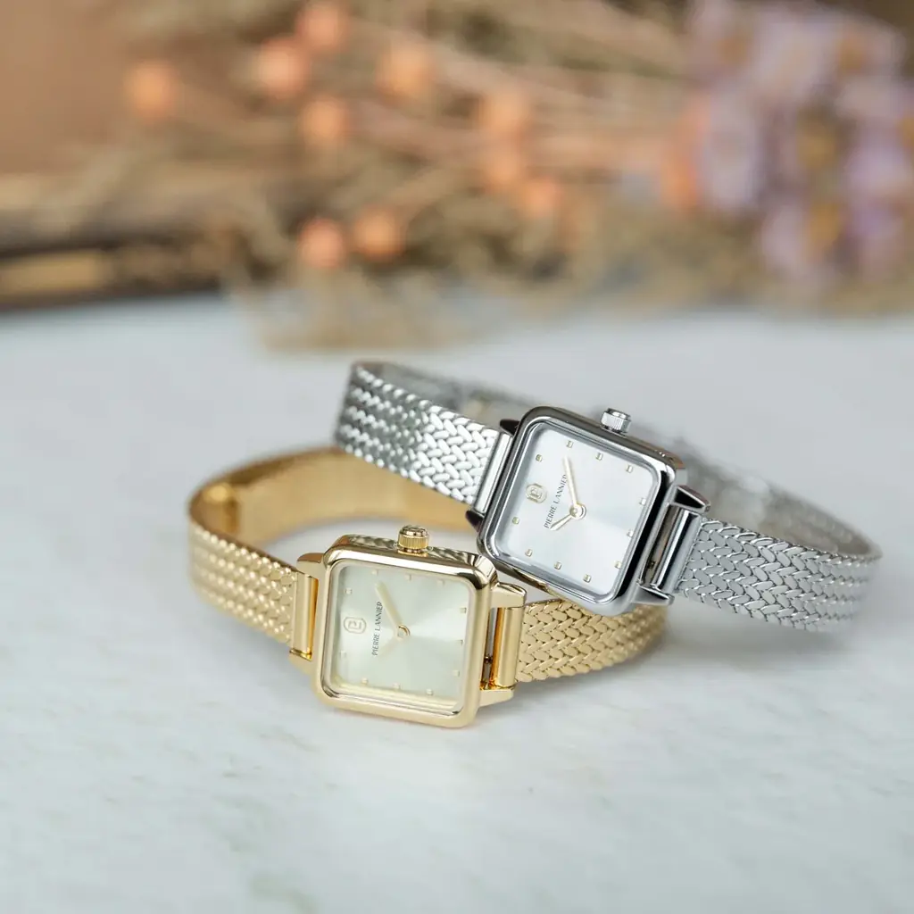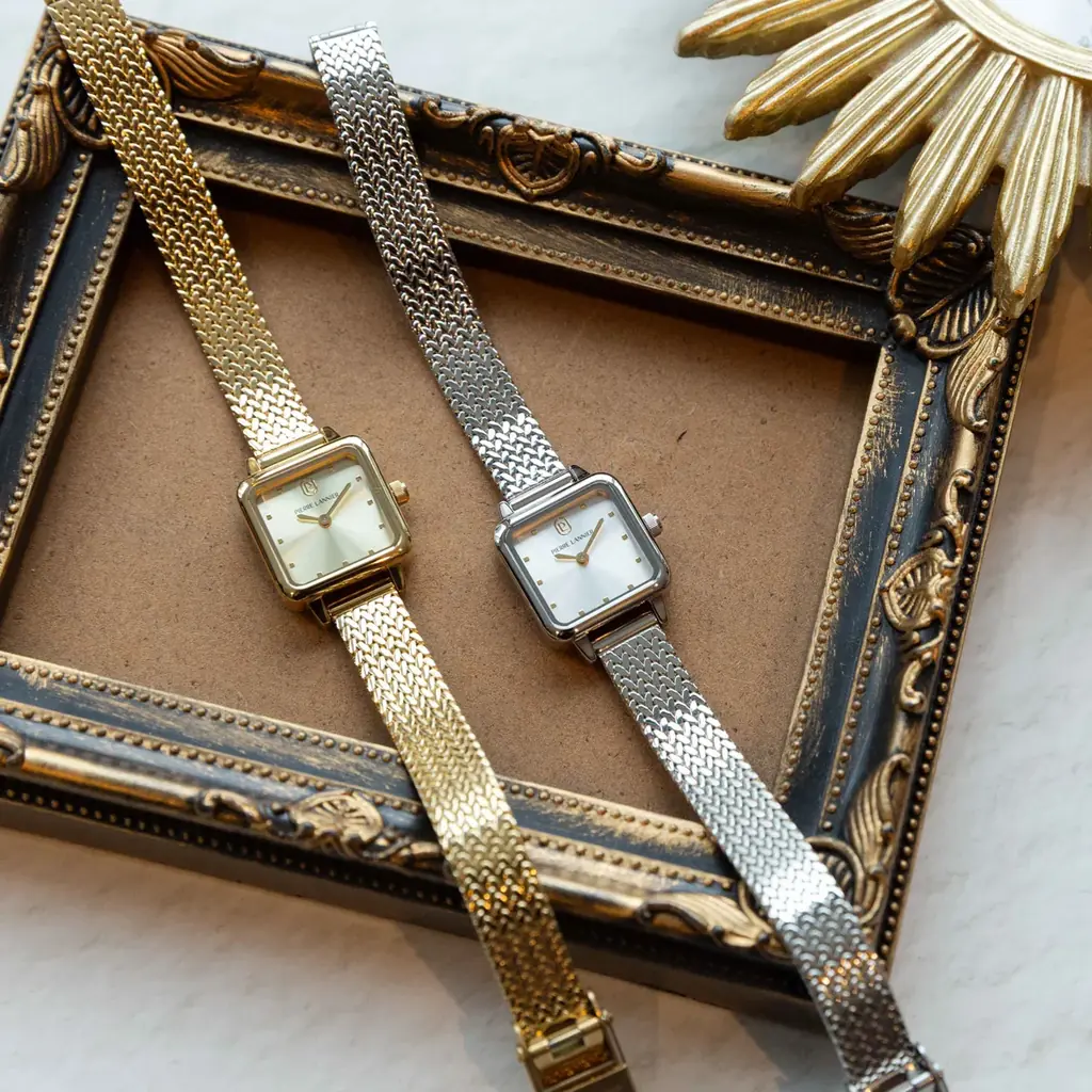 ネオラはパリの歴史的アーケード「ギャルリー・ヴィヴィエンヌ」からの着想を得た、クラシカルで洗練されたスクエアウォッチです。ケースは20mm×20mmのコンパクトサイズで、華奢なベルトと相まって女性らしい印象を与えます。