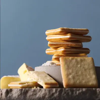 - 商品例(説明):北海道産牛乳とフランス産ゲランドの塩を使った生地にカマンベールチーズのチョコをサンドしたクッキー