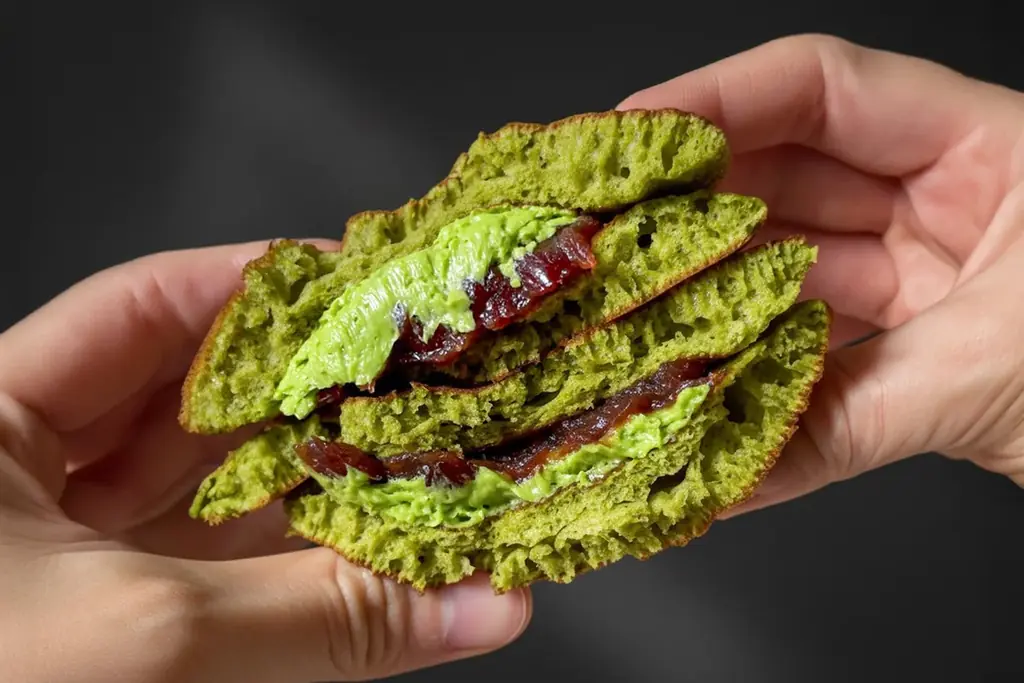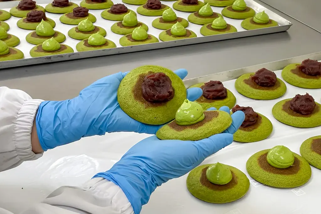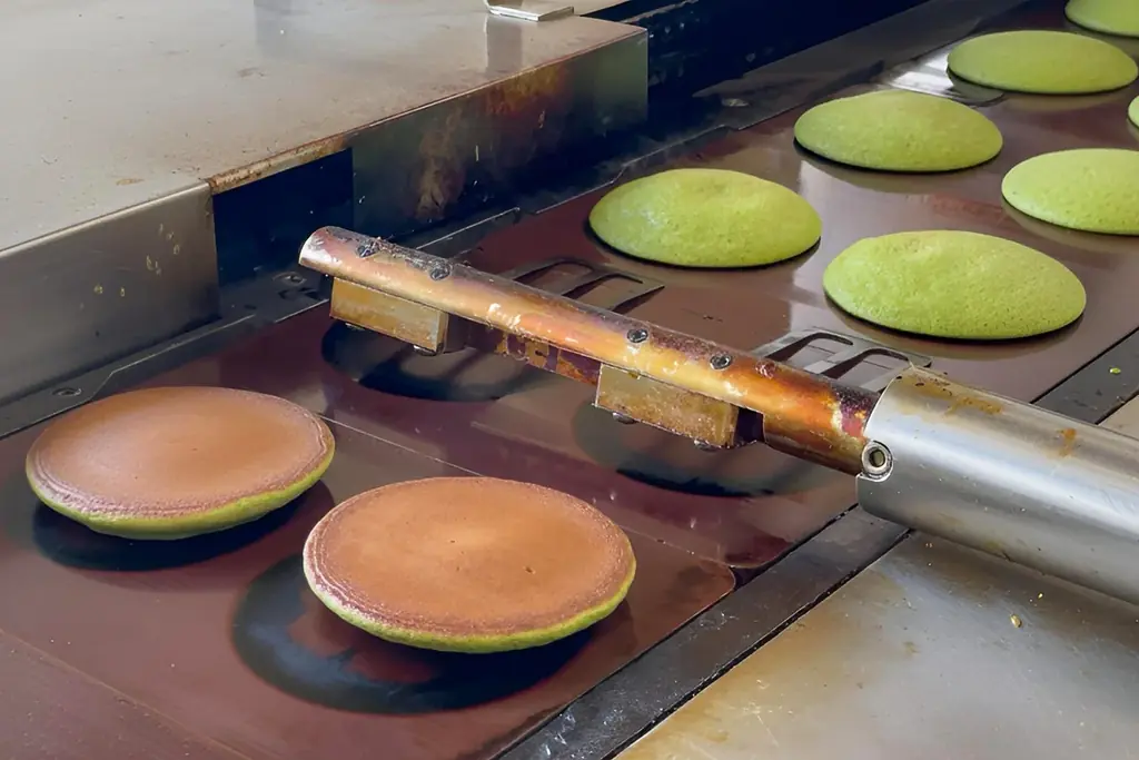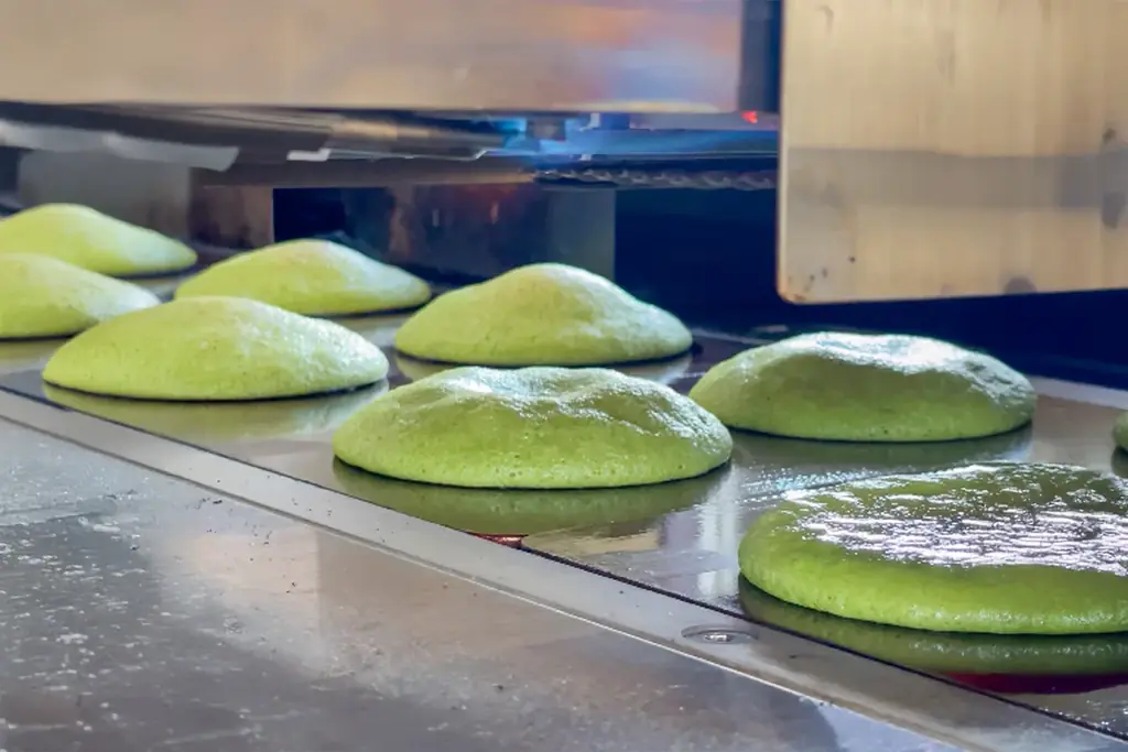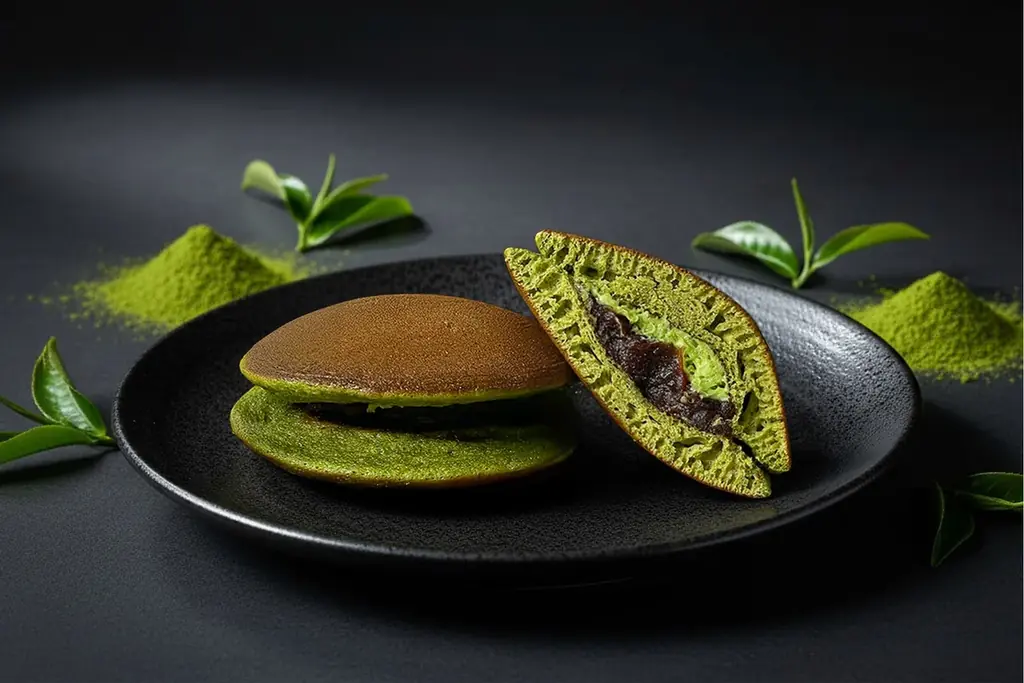 製法上の特徴として、焼く前に一晩生地を寝かせて水分を全体に行き渡らせる工程、そして生地に少量の日本酒を加えることによる旨味としっとり感の付与があります。焼き加減は職人の熟練で管理され、表面に香ばしい焼き色をつけつつ、内側に抹茶の深緑を残すことを実現しています。