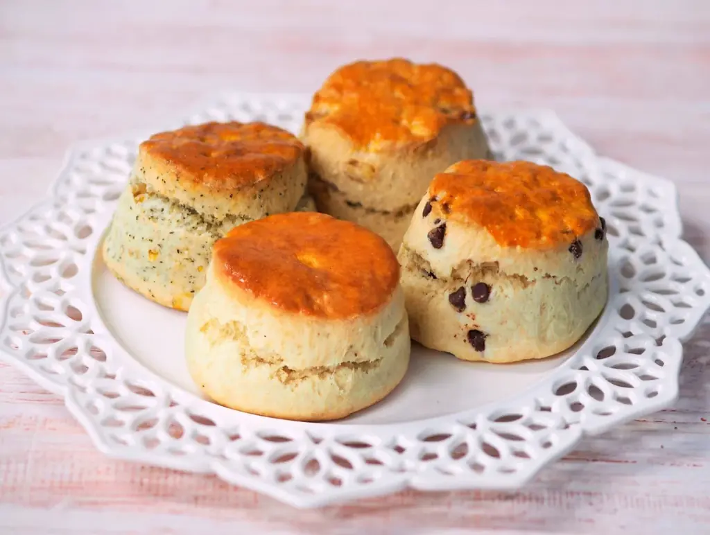 - スコーン(プレーン、アールグレイゆず、キャラメルナッツ、チョコチップ)各1個 389円