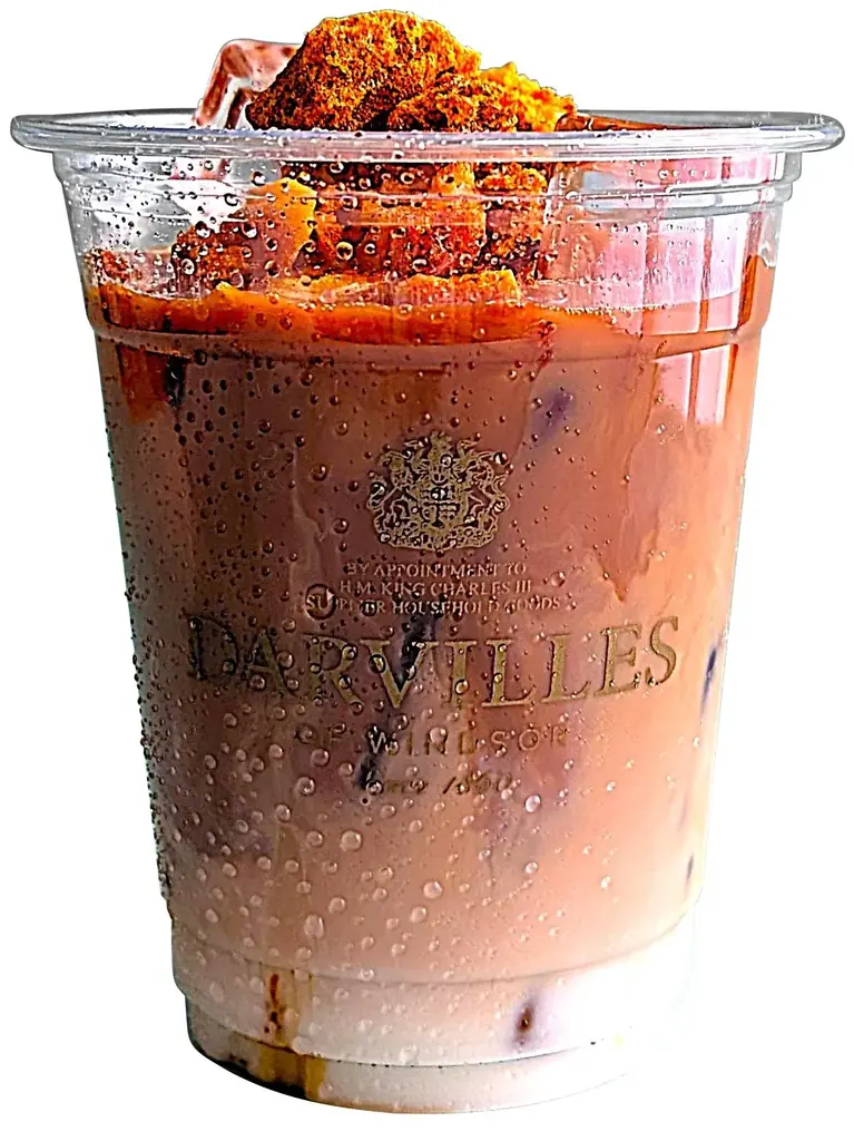 - ・ダーヴィルス:ハニーコム・ミルクティー(1杯)858円。砂糖菓子ハニーコムを溶かしながら味わう濃厚なアイスミルクティー。各日限定80杯。