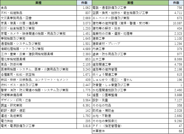 表の通り、物品・機器系では家具や事務用品、情報処理に関わる案件が大幅に減少しました。委託・業務系ではその他の業務委託や維持管理系、調査・研究系が2月の増加分から落ち込んでいます。