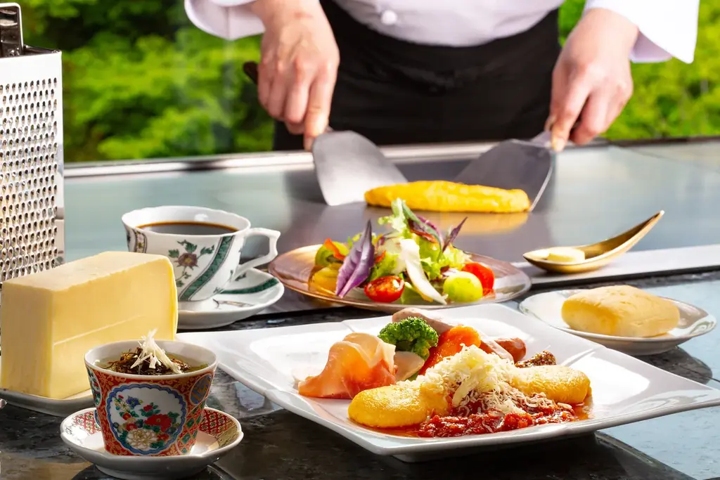 朝食は客室タイプにより「加賀朝食」または「鉄板ブレックファスト」が用意されます。