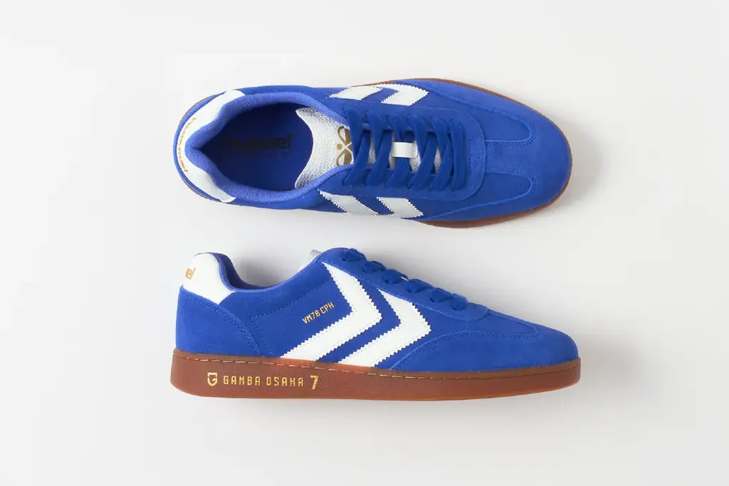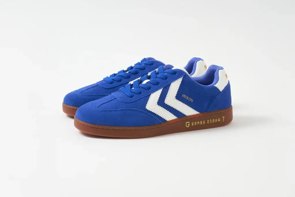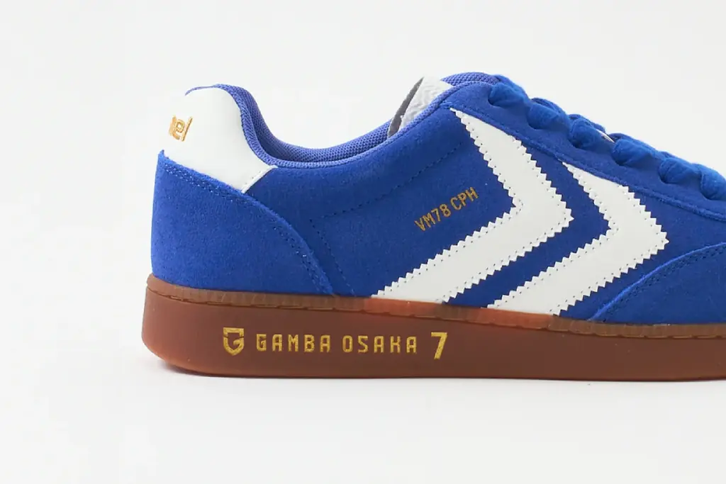 ベースモデルは今季注目のレトロスポーツスタイルを現代的にアップデートした「VM78 CPH」。今回のコラボレーションでは、ガンバ大阪のチームカラーであるブルーを基調とし、ホワイトの太めのシェブロンラインを配したストリート感のあるデザインが採用されている。かかとやシュータンにはゴールドのロゴがアクセントとして配されている。