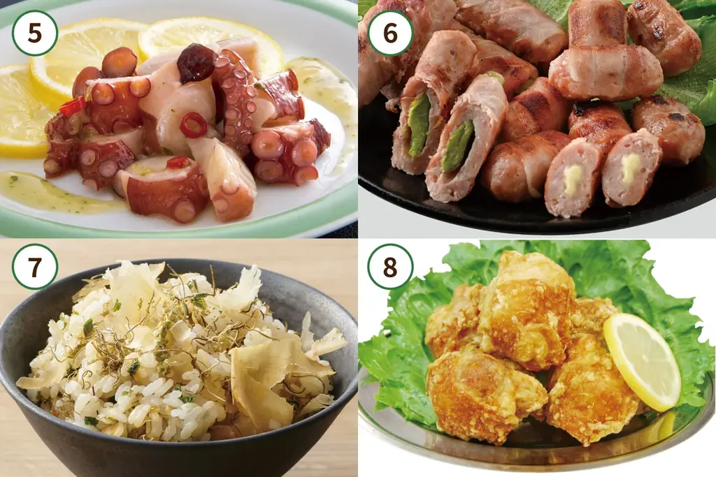 - 【小樽】大和水産:ザンギ(1個・70g) 各241円(枝豆、タマネギ、アスパラ、レンコン、ほうれん草、タコ)。