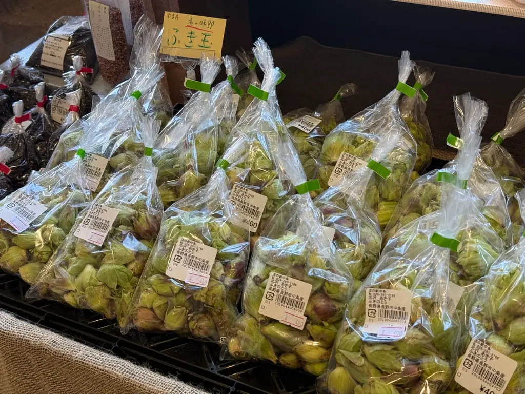 直売所では旬の山菜を中心とした「山菜フェア」を開催します。採れたての山菜や地元野菜が並び、この時期ならではの食材を購入可能です。
