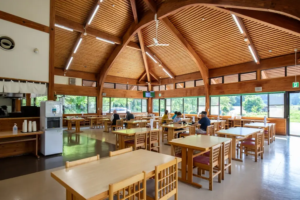 | 主要飲食メニュー | おぶっこ、ローストディア丼(長野県産鹿肉使用)、山菜の天ぷらそば、桜色ソフト、桜色ミルクティー、灰焼きおやき、浜焼き 等 |