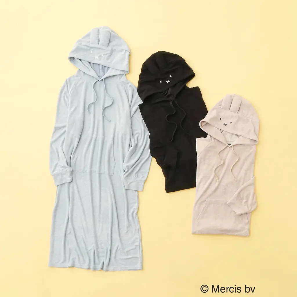 - 【miffy】パイルルームワンピース:7,150円(税込)。フードにミッフィーの耳と顔をデザイン、フロントに大型ポケット1つ、ひも付き仕様。
