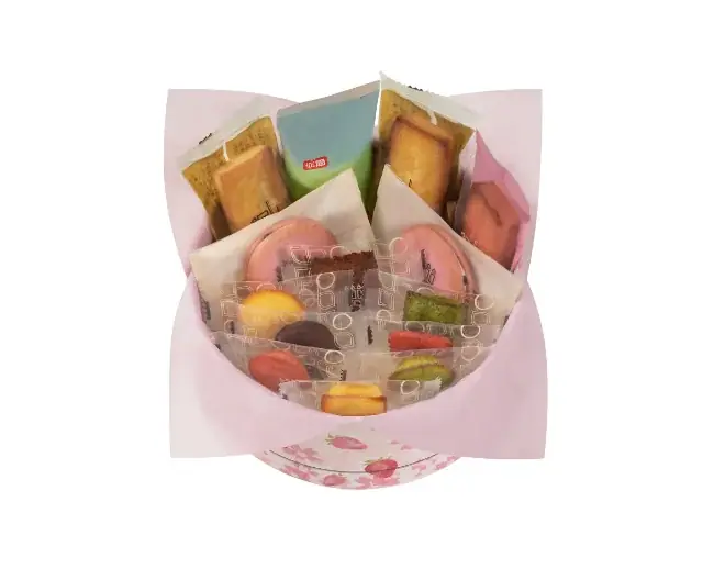 内容説明:兵庫県産“二郎いちご”を用いた「いちごフィナンシェ」、抹茶“さみどり”を使った「錦抹茶フィナンシェ」、桜風味の「ラング・ド・シャ<さくら>」の春限定焼き菓子3種に、世界一の販売数を誇る「フィナンシェ」、8種類の味を楽しめるひと口サイズの「プティ・ガトー」を詰め合わせた商品です。桜と苺を散りばめたパッケージで春らしさを表現しています。