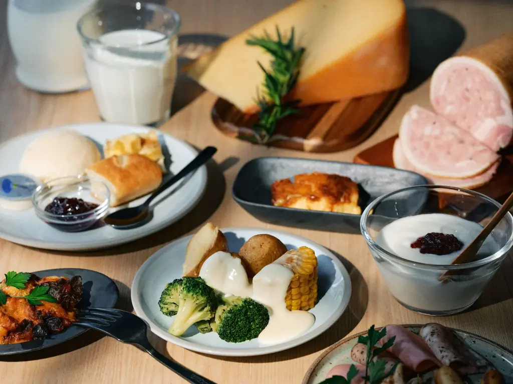 ビュッフェは朝の時間帯に地元の素材を多面的に味わえる構成となっており、乳製品や畜産品、郷土色の強い惣菜などが並ぶことが特徴です。宿泊客に対して、短時間で北海道の食文化を体感してもらうための工夫が随所に盛り込まれています。