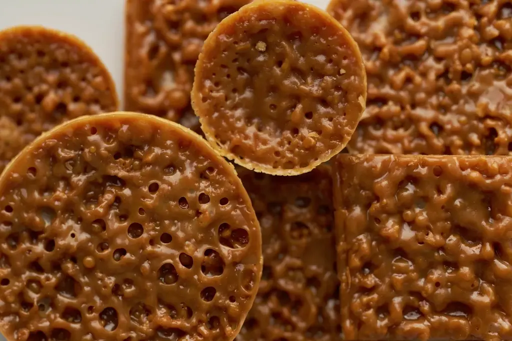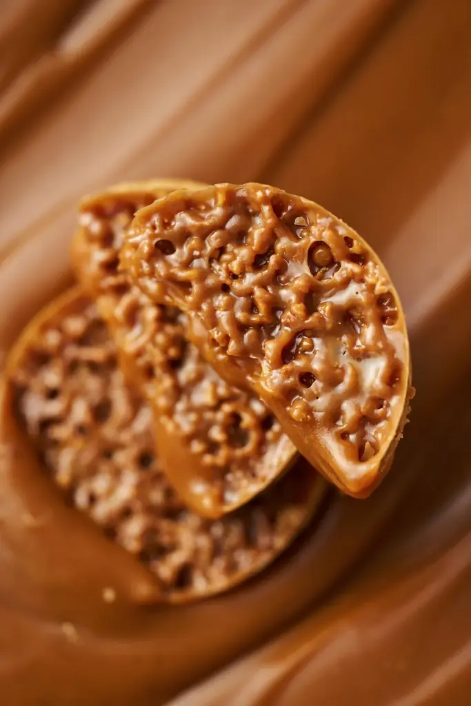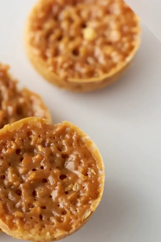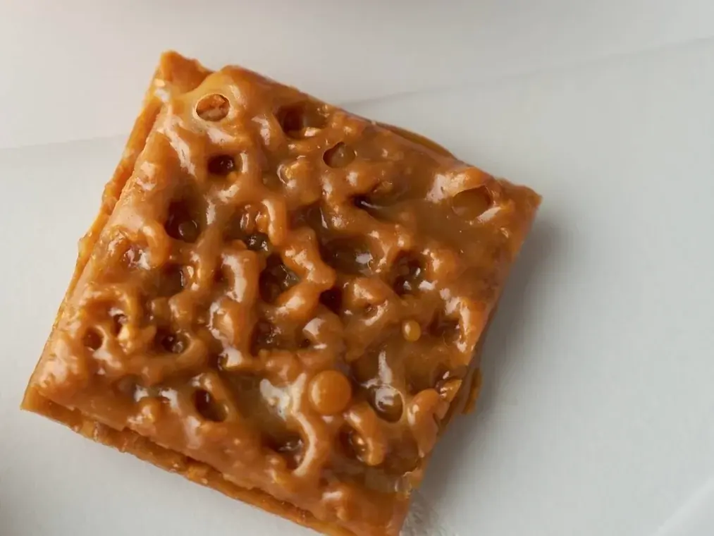 ORIGAMIのシグネチャーである『メルティフロランタン』は、香ばしく焼き上げたアーモンドのヌガティーヌ、とろけるキャラメル、バターの香るサブレブルトンの三層を組み合わせたものです。三層が織りなす食感は「ザクッ」「ほろり」「とろり」と変化し、これまでのフロランタンのイメージを刷新する設計です。
