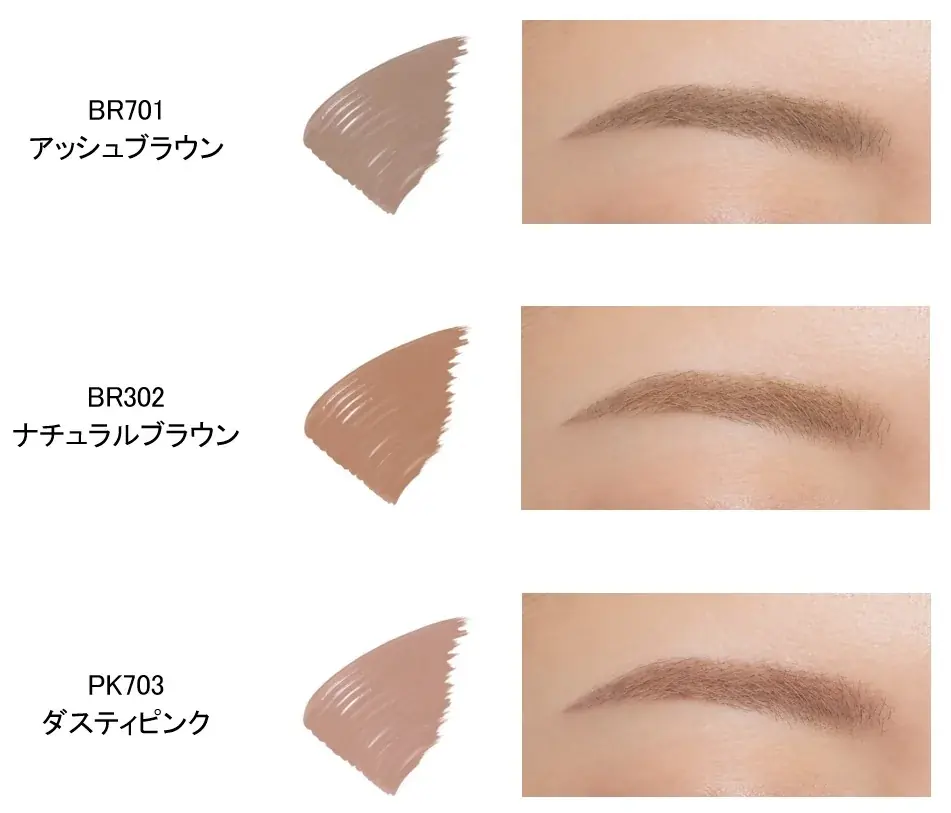 色は全3色のくすみ系カラーで、自眉の黒さを和らげつつ顔全体の印象を洗練させることを意図しています。具体的な色名とコードは以下の通りです。