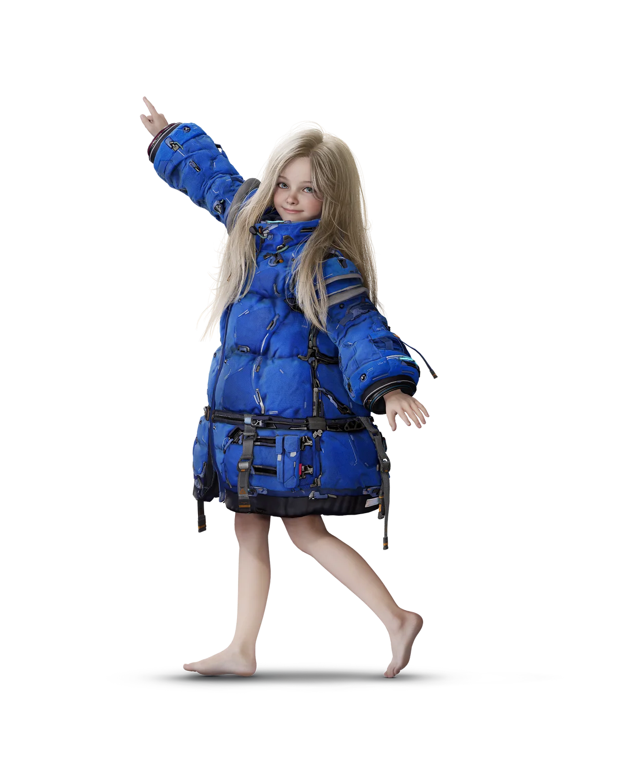 ディアナは作品世界で月面世界にてヒューと出会う少女型アンドロイドです。好奇心が旺盛で学習能力が高い一方、蓄積データが少ないため無邪気に見える反応を示すことがあります。ハッキング能力を活かしてヒューとともに地球への帰還を目指す役割を担っており、その透明感のあるビジュアルと象徴的なデザインは本作のアイコン的存在として注目されています。