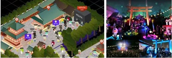 - 特徴:2Dメタバースによる空間再現、アバターでの参加、伝統文化のDX化