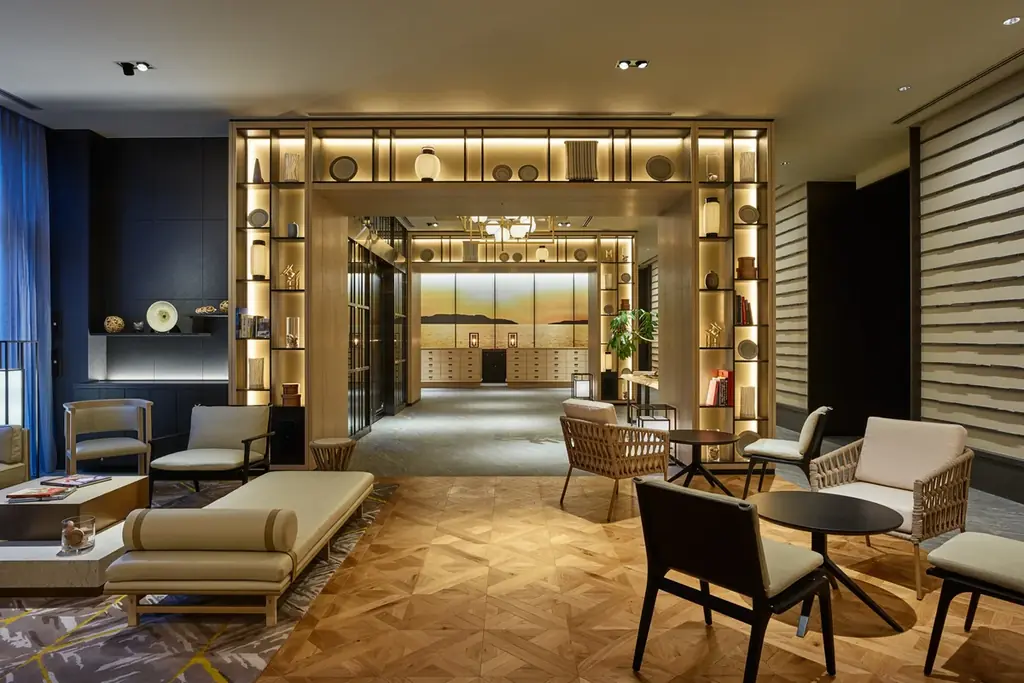 三井ガーデンホテル福岡祇園は博多の歴史と文化が息づく祇園に位置し、伝統とモダンが融合した空間が特徴です。館内には博多織や五色献上などの意匠を取り入れており、上質で温もりある空間設計がなされています。