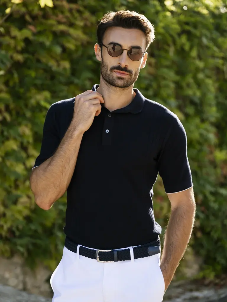 | コットン×カシミヤ ニット(ポロカラー) | 上質な肌触り、品格と遊び心の両立 | ¥42,900 | ホワイト・グリーン・サックス・ネイビー / 031-15342 |