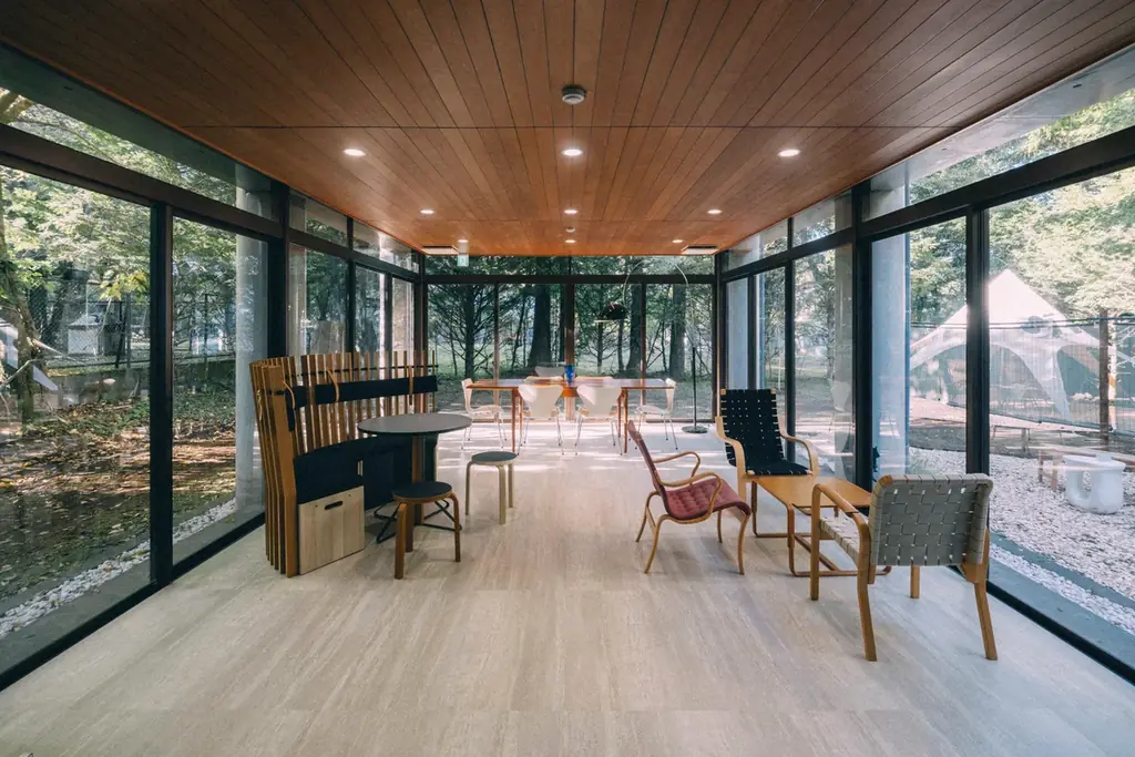 - ガラス張りラウンジ(飲み放題提供あり)、和室3室、洋室あり