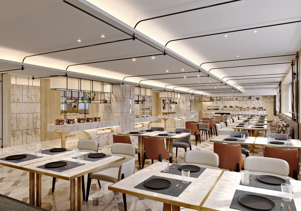- 時間帯を問わず食事を提供するダイニング。朝食・昼食・夕食に対応するオールデイダイニングとして運営。