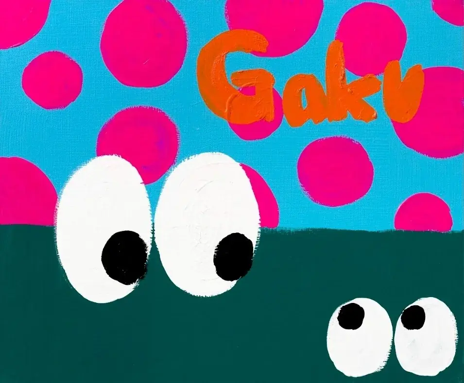 | 代表的な作品例 | Happy Together(116.7×91cm、アクリル・キャンバス/参考)/Happy Cheetah(72.5×60.6cm、参考)/Red Yellow Bubble(72.5×60.6cm、550,000円)/Human親子(45.5×38cm、参考)/Gaku’s Garden(60.6×60.6cm、1,078,000円) |