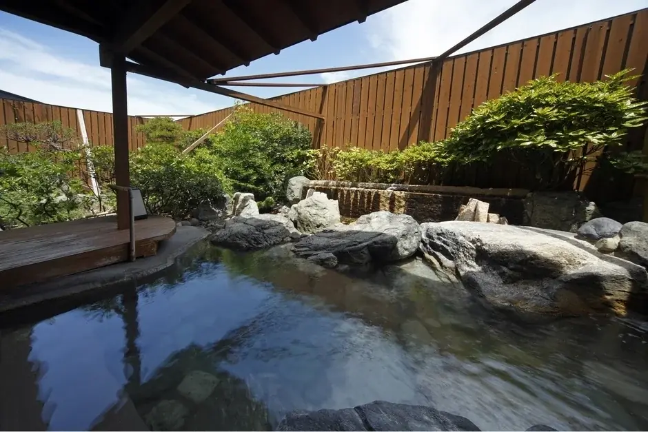主な設備としてはラウンジ、料理提供スペース(お食事)、露天風呂、そしてバレルサウナが挙げられます。露天風呂からの景観や伝統的な設えが特徴です。