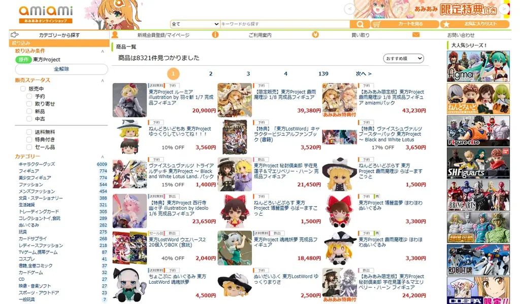 - あみあみオンラインショップ:https://www.amiami.jp/