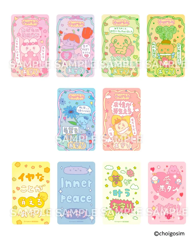 配布されるノベルティは「オリジナルお守りステッカー」(全10種・各店計40枚)で、サイズは約91×55mm、素材は紙です。キービジュアルに登場する“ゴシムちゃん”やポジティブなメッセージがデザインされています。