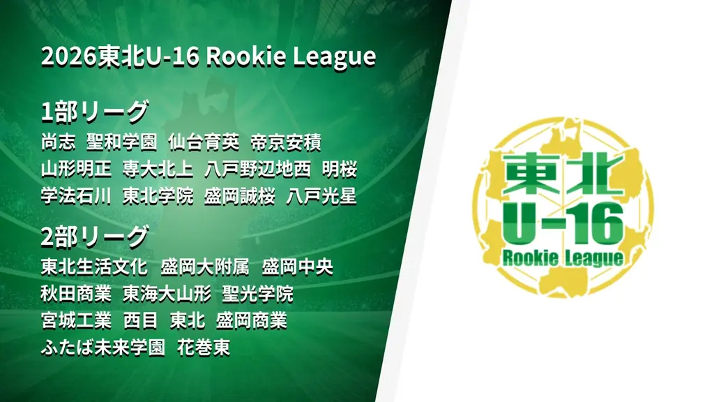 2026年シーズンのルーキーリーグU-16が、ルーキーリーグジャパンの発表により開幕した。発表日は2026年4月8日 09時00分で、高校入学直後の1年生が新体制で臨む通年のリーグ戦が、全国9つのエリアで同時にスタートする。4月・5月の開幕時期から12月の全国大会まで、長期にわたって実戦の場を確保することで、選手個々の成長過程を競技環境の中で加速させるのが大会の狙いである。