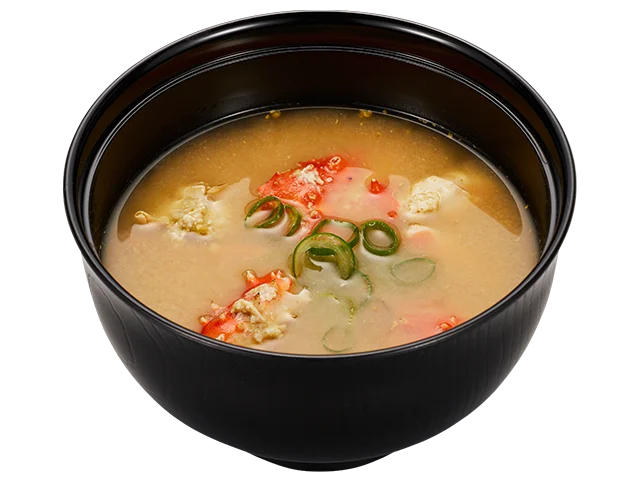 - 北海道産『たらば蟹の鉄砲汁’:300円(税込330円)~。味噌仕立ての味噌汁に北海道産の殻付きたらば蟹を加えた、北海道郷土料理に着想を得た一杯です。かにみそを溶かし入れることで蟹の風味を高めています。※たらば蟹は出汁用であり、お召し上がりはおすすめしていません。