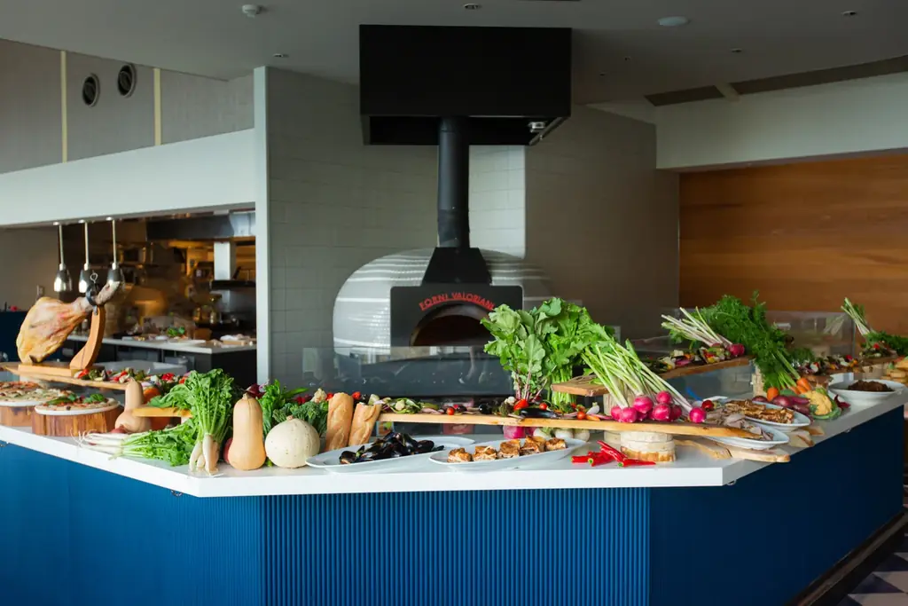 今回の限定ビュッフェは、活気あるイタリアの市場のような「選ぶ楽しさ」と窯の前で次々と焼き上がるピザの「ライブ感」を両立させる企画として構成されています。店内の石窯からは焼きたてのピザが次々と提供される演出も予定されています。