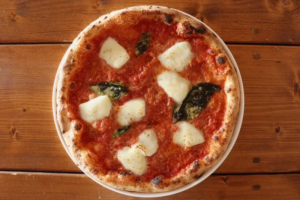 マルゲリータはナポリ産小麦を低温でじっくり長時間発酵させた生地を使用し、自家製トマトソースとモッツァレラの調和を大切に高温の窯で香ばしく焼き上げる一枚です。石窯の高温で短時間に焼き上げることで、外は香ばしく中はもちもちとした食感が特徴です。