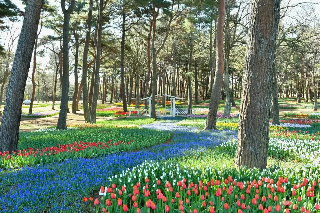 園内には観覧車などのアトラクションがあるプレジャーガーデン、林間アスレチック、バーベキュー広場などが整備されており、花見だけでなくレクリエーションやピクニック、遊具利用など多様な過ごし方が可能です。海抜100mからの眺望を楽しめる観覧車からは園内の花の分布や太平洋の景観を同時に見渡すことができます。