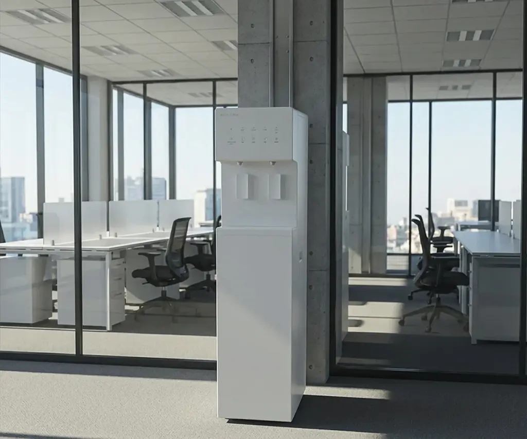 本機はボトル不要の自動給水型で、タンク容量は合計21.6リットル(常温水・冷水・温水の合計)を備えています。オフィスや公共施設、来客の多い店舗などで多数の利用者がいる環境にも対応することを意図した設計です。ボトル交換や廃棄が不要であるため、運用の手間削減と使い捨てプラスチック削減の双方に寄与します。