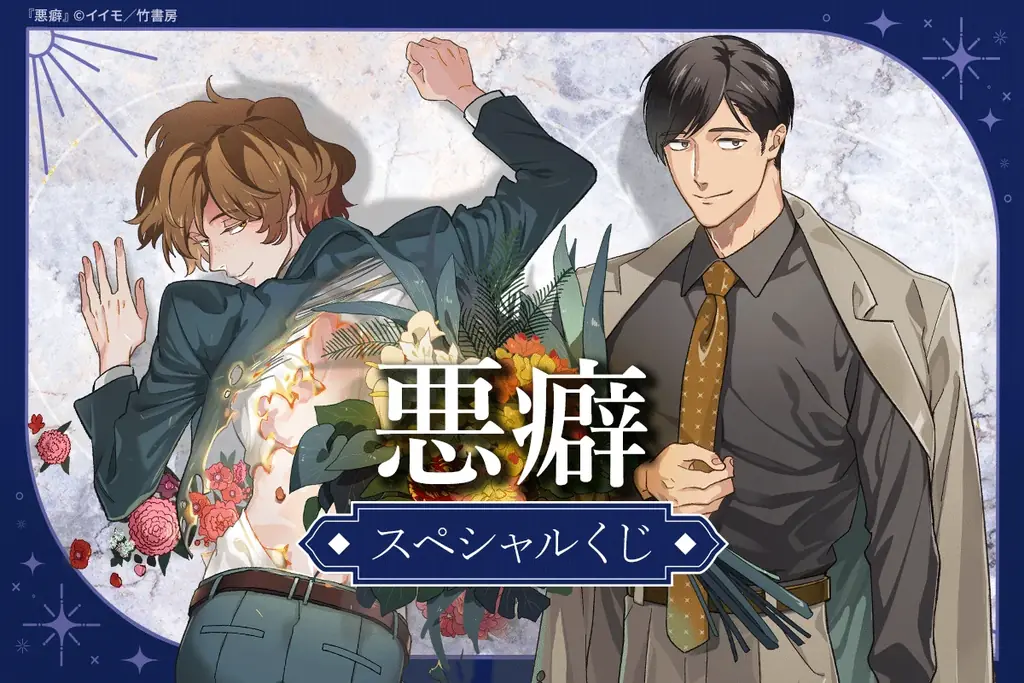 株式会社竹書房は、BLレーベル「麗人」に掲載された人気作品『悪癖』(イイモ 著)を題材にしたオンラインくじ「『悪癖』スペシャルくじ」を、オンラインくじサービス「ほしくじ」にて2026年4月10日(金)より販売開始すると発表しました。今回のくじには、本くじのためにイイモ先生が新たに描きおろした美麗イラストをはじめ、コミックス表紙イラストを使用したオリジナルグッズが多数用意されています。