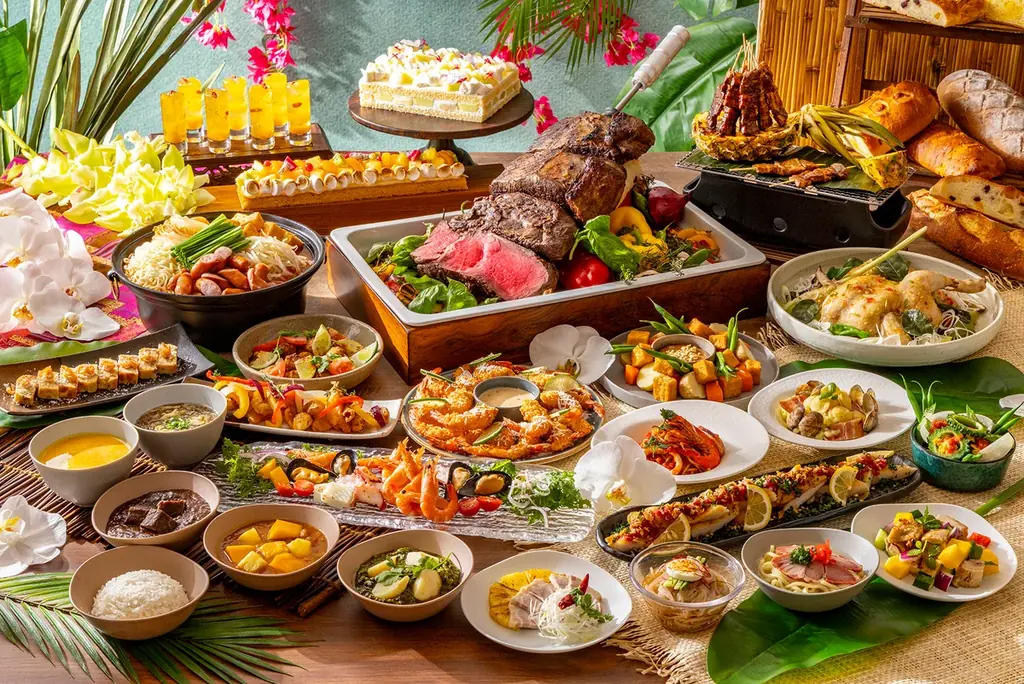 | 主なメニュー | 厳選グリルビーフのカッティング(3種ソース)、スイート&スパイシー スチームチキン、ハワイアンココナッツシュリンプ(週末限定)、ポークの串焼きインドネシア風、エスコヴィッチ・フィッシュ、ヌードルステーション(平日限定)、カレーステーション、日替わりスープ、スイーツ(メロン・白桃・マンゴー等)、アイスキャンディー(4種)等 |