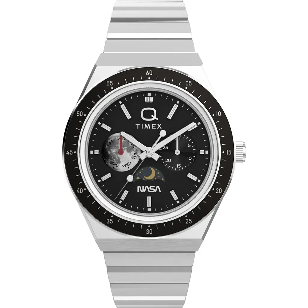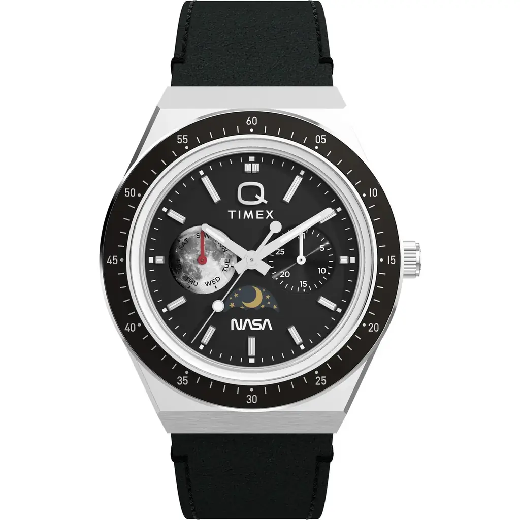本モデルは、1970年代のクォーツウォッチを現代に復刻したシリーズ「Q Timex」をベースに、宇宙探索の歴史的意義とヴィンテージの造形美を融合させたコラボレーションです。TIMEXが長年培ってきた大衆的かつ信頼性の高い時計作りの精神に、NASAという象徴的なモチーフを落とし込むことで、機能性と物語性の両立を図っています。