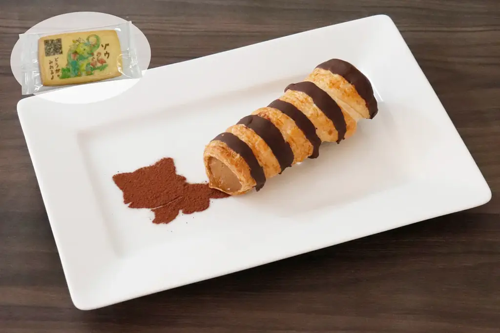 館内レストランでは到津の森公園とのコラボ限定メニューを販売し、すべてに「QRサブレ」がセットされます。サブレには二次元コードが印刷されており、読み取ることで到津の森公園の動物動画や写真素材を楽しめます。