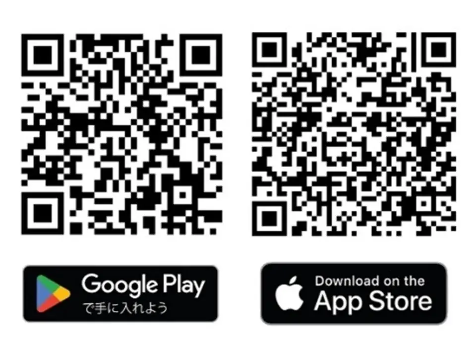 アプリはGoogle PlayまたはApp Storeからダウンロード可能で、発表資料ではQRコード((株)デンソーウェーブの登録商標である旨明記)によるダウンロード導線も用意されています。