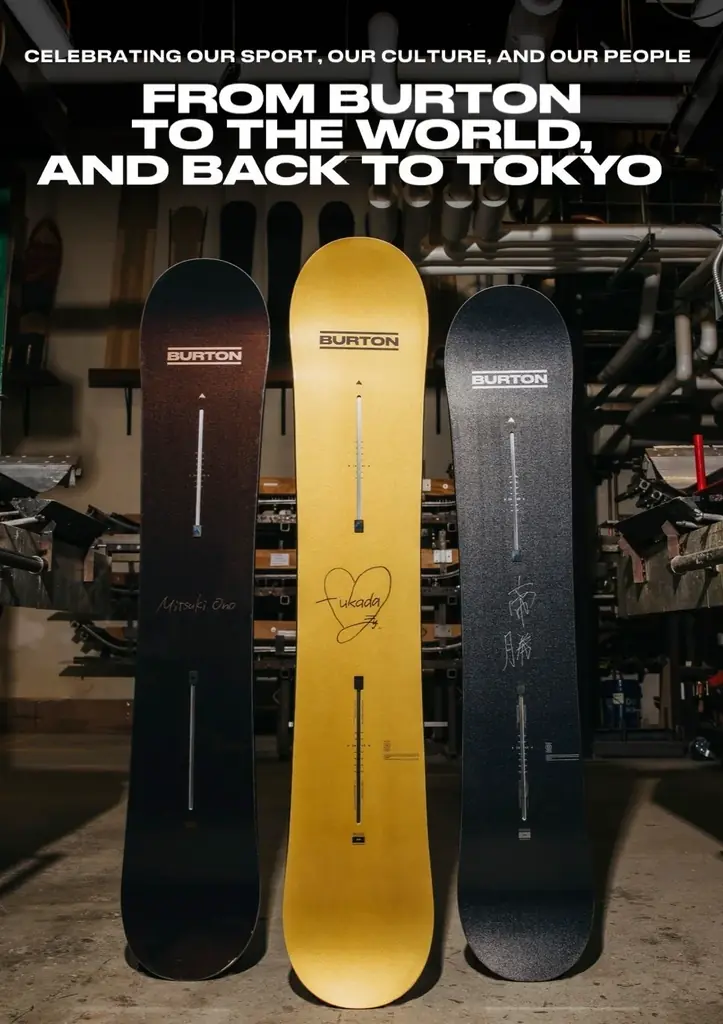 「From Burton to the World」シリーズ自体は、ジェイクのスノーボードに対する想いとビジョンを世界中で共有する目的でチームライダーらに使われ、さまざまなシーンでそのメッセージが共感を呼んできました。今回のセレブレーションは、そのビジュアル要素を土台とし、各ライダーの功績を反映する特別なカラーリングを施すことで、個別の“讃え”を表現しています。
