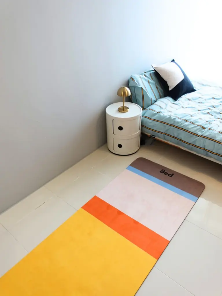 - Palette(パレット) — 絵の具のパレットを思わせる配列で、オレンジとブルーの配色が空間に程よいアクセントとリズムを生み出します。