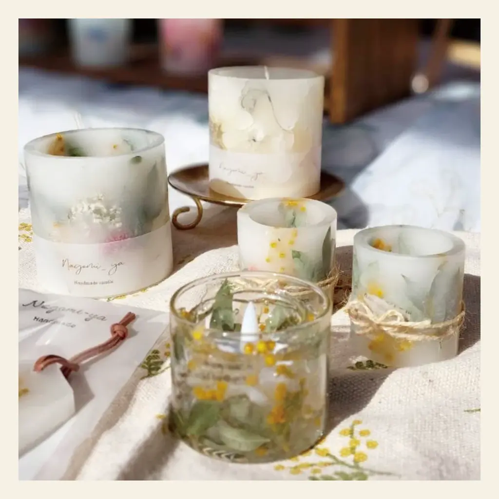 Instagram:https://www.instagram.com/beadslab0210 - NAGOMIYA(キャンドル):ドライフラワーとワックスを使ったサシェやキャンドルを販売。花の香りとともに癒しを届ける製品を展開。