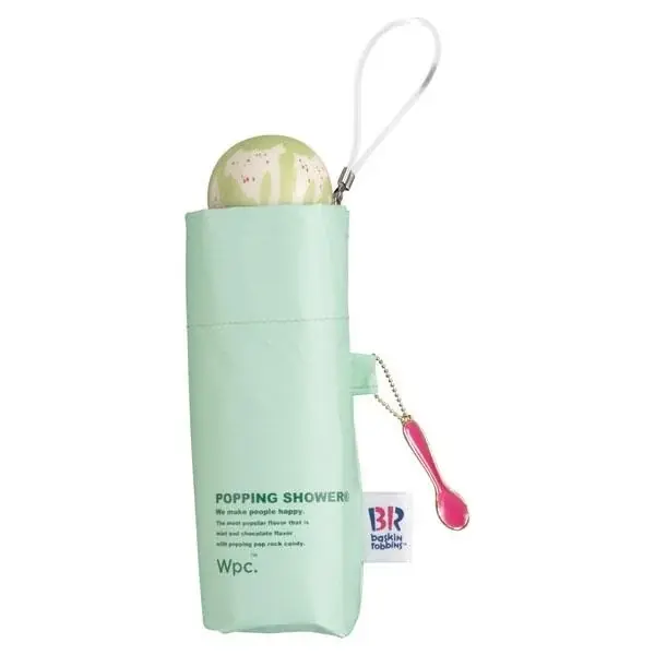• 持ち手やワンポイントの刺繍でサーティワンの人気フレーバーを表現。スプーン型チャーム付きの折りたたみ傘。