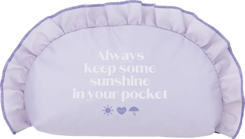 • フリルをあしらった折りたたみ傘。傘とポーチにフリルを配し、出し入れしやすい収納ポーチ付き。