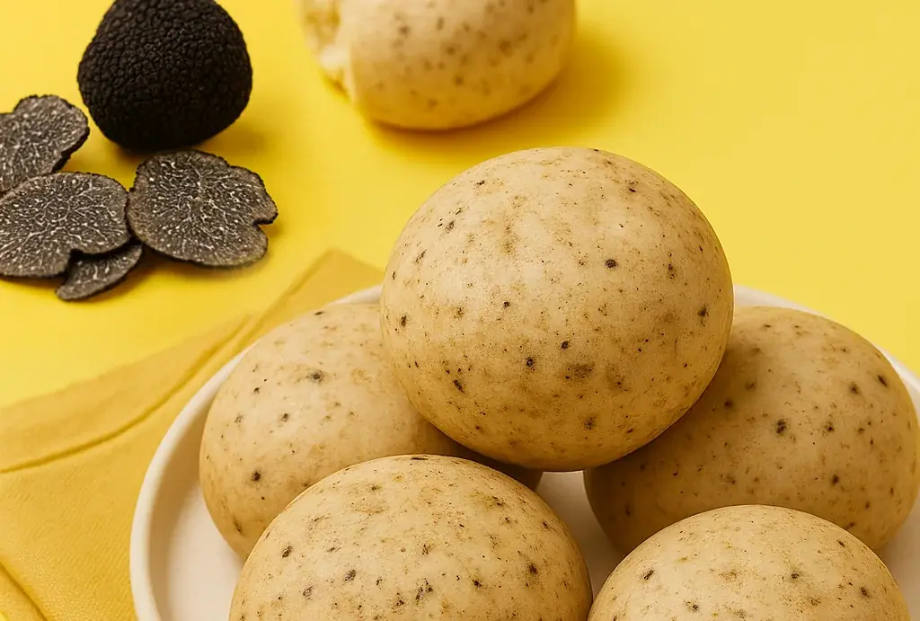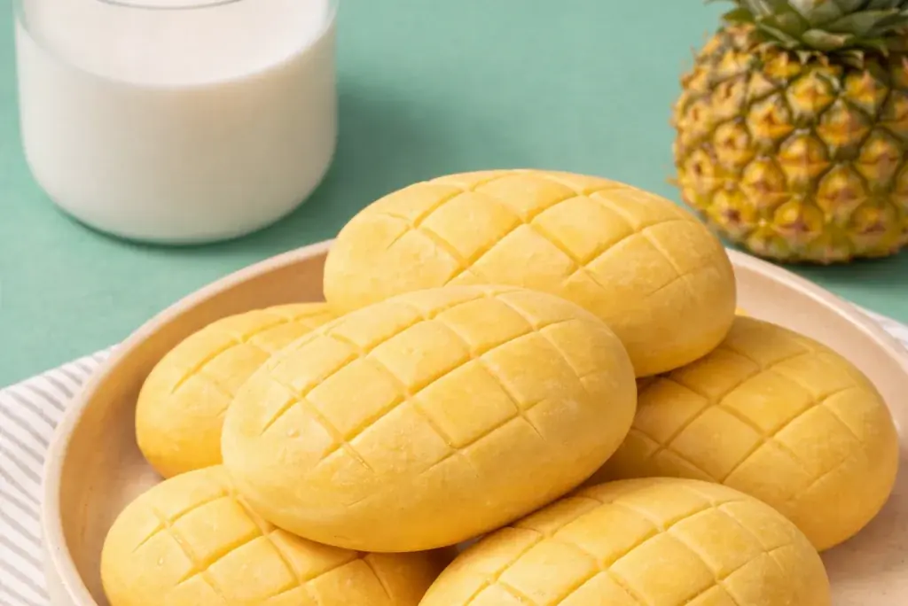 ジョンナンミミョンガの野菜スイーツパンは、もち米粉(もち米を使用した生地)を主原料とすることで、外は香ばしく内側はしっとりとしたもっちり食感を実現しています。表面のビジュアルは、本物の野菜や果物そっくりに仕上げられており、見た目のインパクトと食べやすさの両立が特徴です。