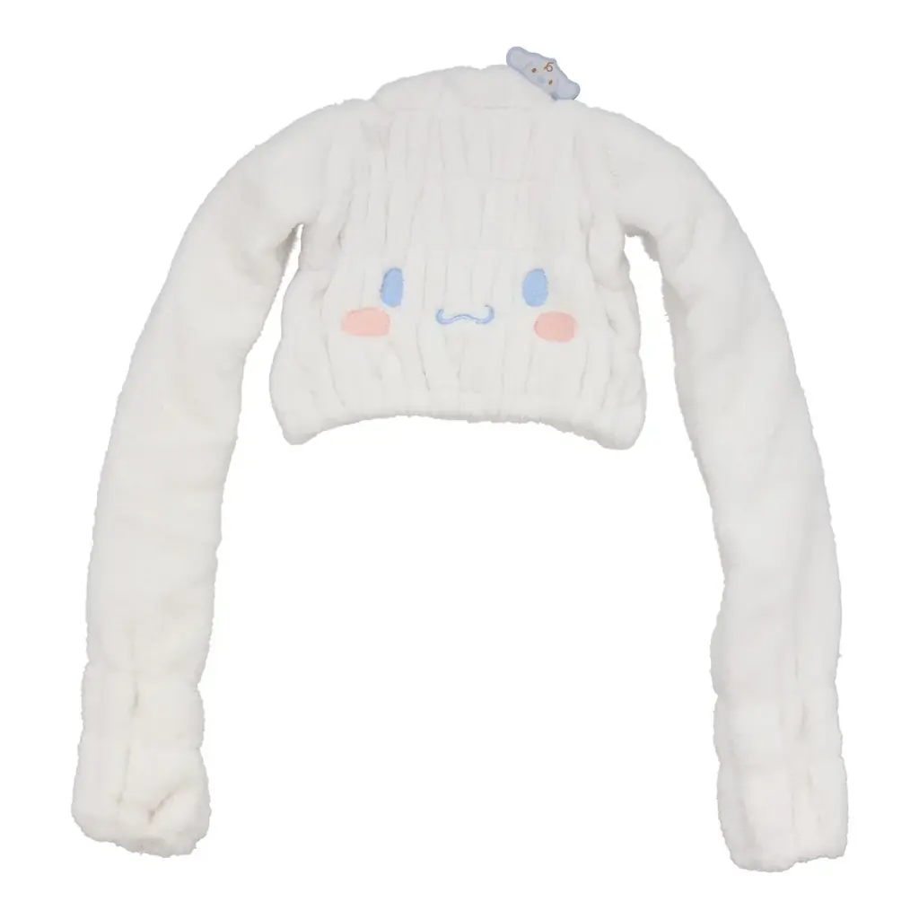 新商品は、長い髪でもしっかり吸水し、摩擦を抑えることで髪への負担を軽減する機能を持ち、ヘアドライの時間短縮を目指したアイテムです。ラインナップは「マイメロディ」「ポムポムプリン」「ポチャッコ」「シナモロール」の全4種のキャラクターデザインで、それぞれ両側に長い“耳”のような形状のタオルが付いている点が特徴です。