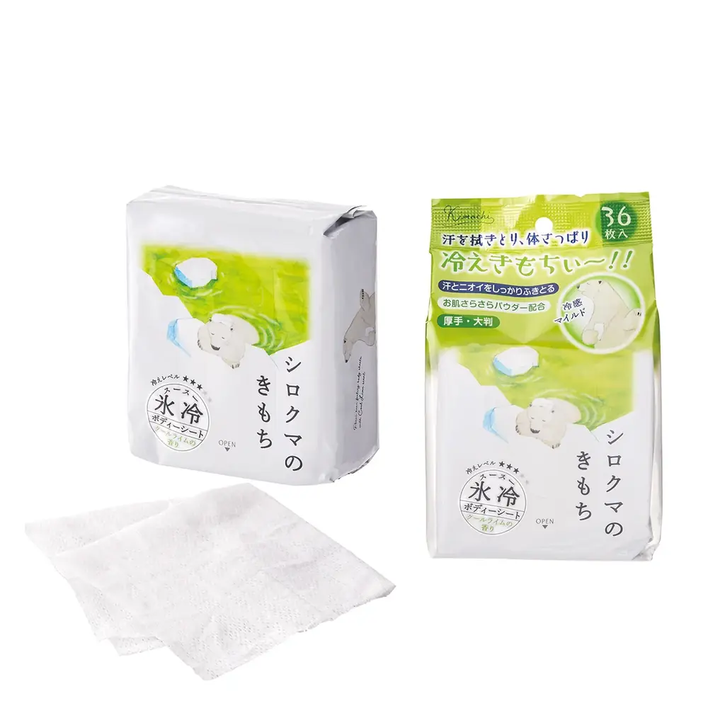 | キモチ 氷冷ボディーシート | ペンギン・シロクマ(全2種) | 36枚入り(W200×H200mm) | 682円 | メントール配合、さらさらパウダー、立体メッシュ、大容量 |